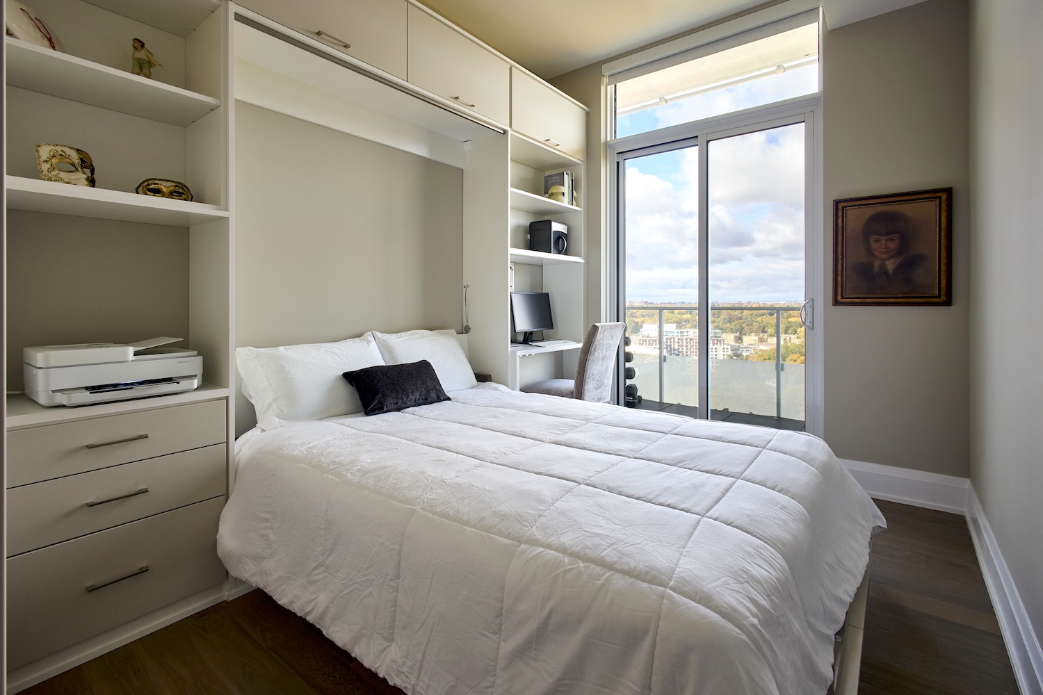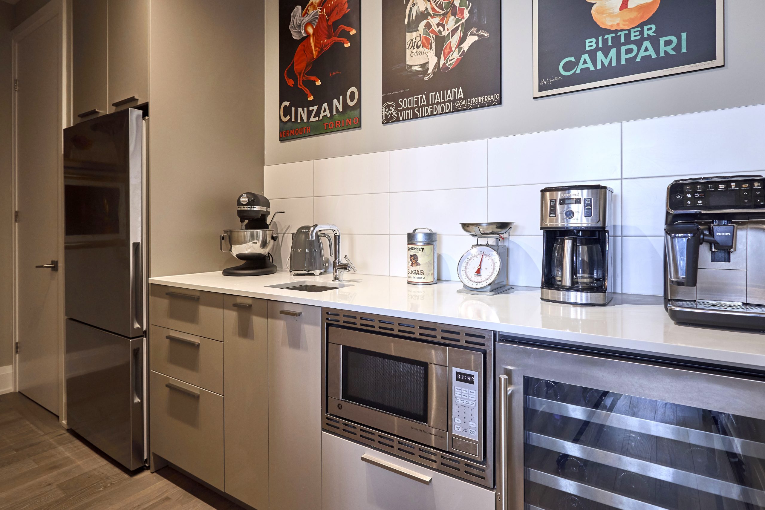 The exceptional split two-bedroom-plus-den plan is among the buildingās most sought-after configurations, celebrated for its generous room proportions, wide principal rooms, abundant in-suite storage, and remarkable sense of volume. The chefās kitchen offers expansive counter space, premium integrated appliances, and custom cabinetry, seamlessly paired with a substantial walk-in pantry complete with second refrigerator, sink, wine fridge, and extraordinary storage capacityāan uncommon feature even within the buildingās larger suites.